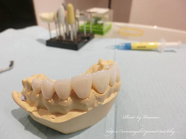 先裝三顆全瓷冠的假牙(抽神經那三顆~)