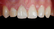 再貼上陶瓷貼片在磨小的牙齒外面